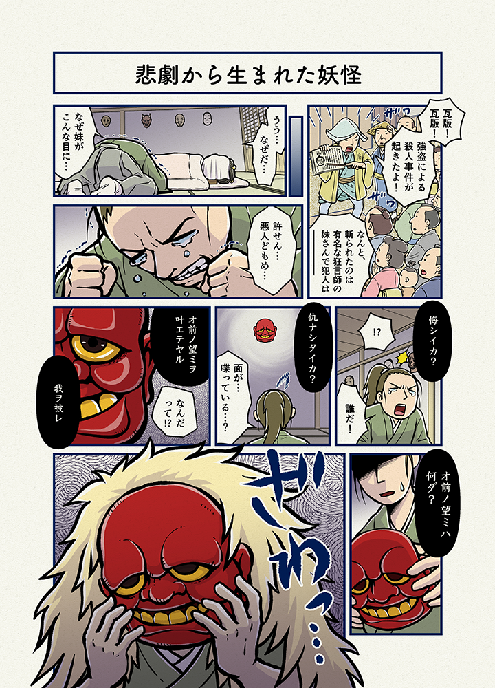 足裁武悪は元々人間であり、家族を殺された怨念が呪いの仮面を引き寄せ、生まれた妖怪なんだって。