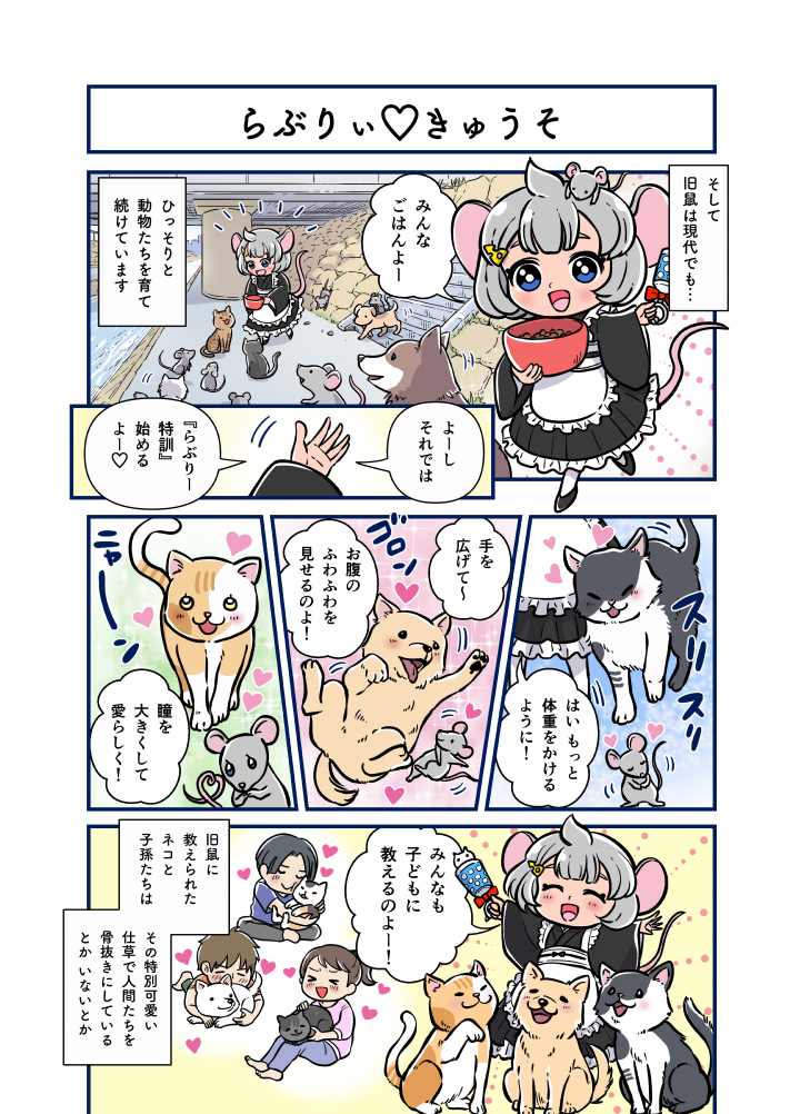 子猫や小動物が元気に遊んでいる姿を目撃したら密かに旧鼠が彼らの面倒を見てあげているからなんだって。