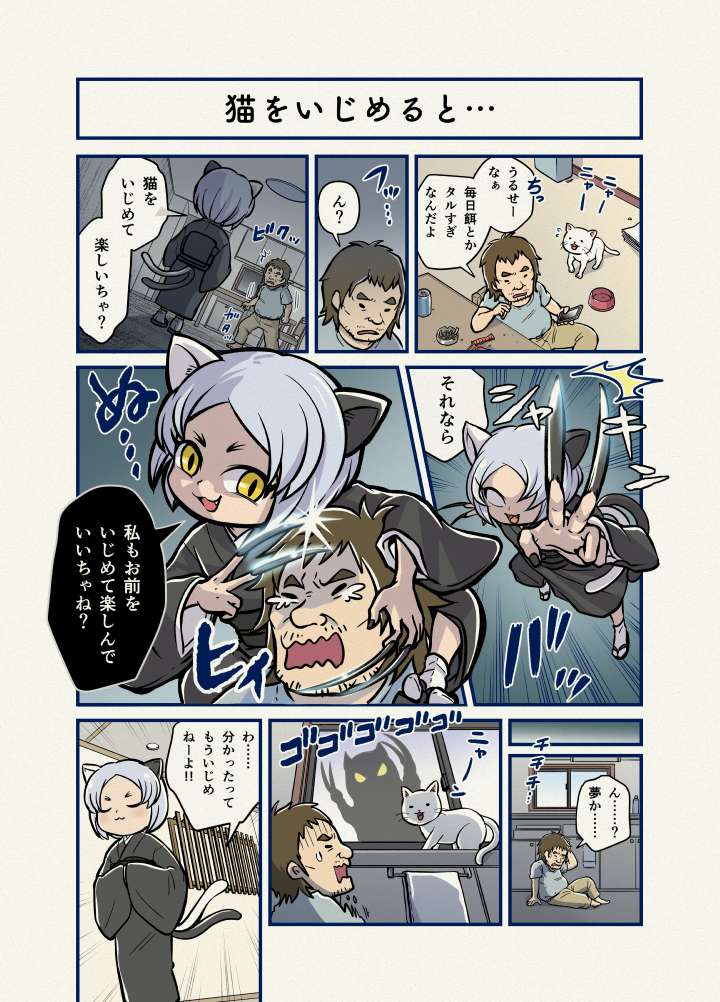 そんな猫又の性格は二重人格で、良い飼い主に対しては従順だけど、悪い飼い主に対しては化け猫になってしまうんだって...!